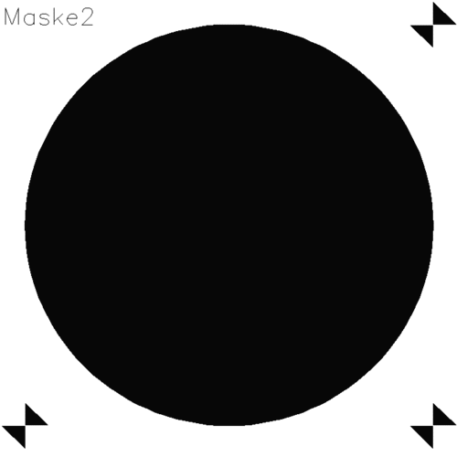 Diese Justierungshilfen befinden sich auf den Masken an jeweils drei Ecken, wodurch ein Verdrehen der Masken verhindert wird. An der vierten Ecke befindet sich eine Beschriftung der Masken (Maske 1, Maske 2, Maske 3). Mit dieser Beschriftung soll eine Benutzung der Masken von der Rückseite verhindert werden, sie soll beim Auflegen der Masken auf eine Struktur immer lesbar sein.